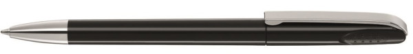 Drehkugelschreiber mit glänzend gedecktem Gehäuse, schwerer Metallspitze und Metallclip. Griffnoppen in der Kappe unterstützen den komfortablen Drehmechanismus.