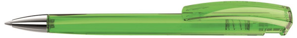 Druckkugelschreiber mit transparent glänzendem Dreikantgehäuse und schwerer Metallspitze... mehr