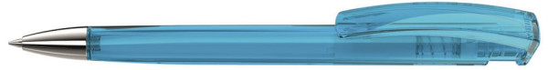 Druckkugelschreiber mit transparent glänzendem Dreikantgehäuse und schwerer Metallspitze... mehr