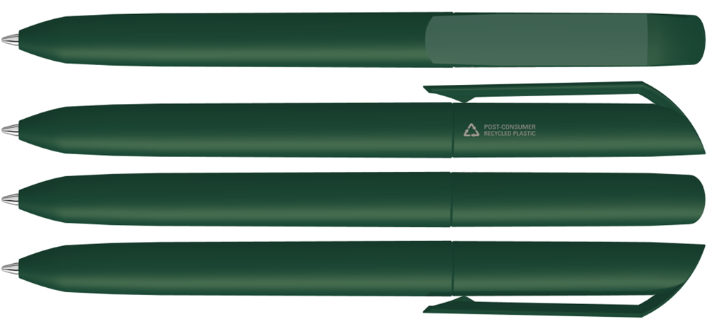 Drehkugelschreiber mit gedeckt mattem Gehäuse und Clip aus 100% recyceltem Post-Consumer-Kunststoff.