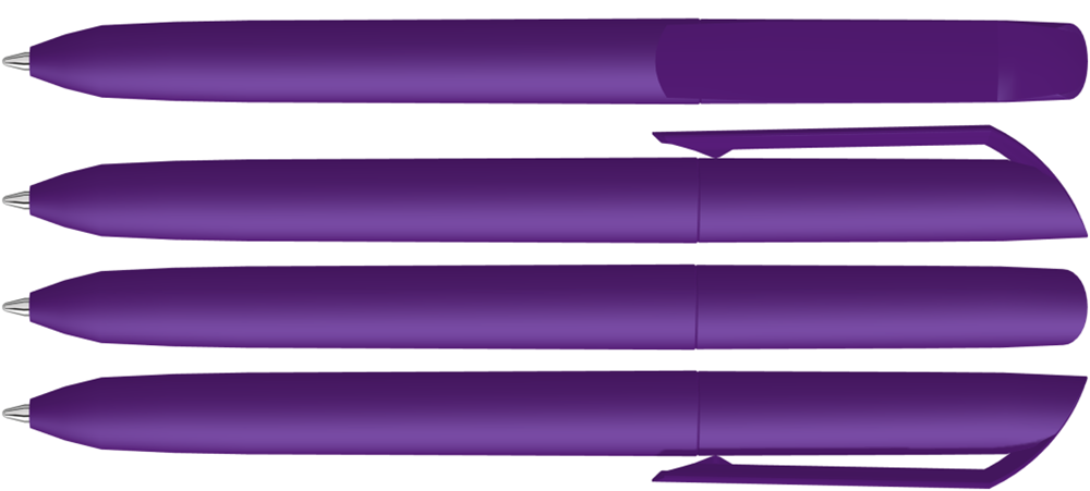 Drehkugelschreiber mit Softtouch-Gehäuse und gedeckt glänzendem Clip.