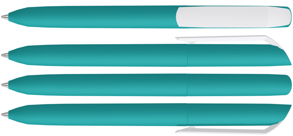 Drehkugelschreiber mit Softtouch-Gehäuse und gedeckt glänzendem Clip in weiß.