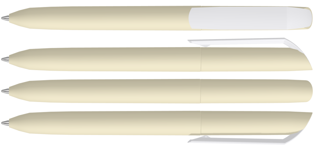 Drehkugelschreiber mit Softtouch-Gehäuse und gedeckt glänzendem Clip in weiß.