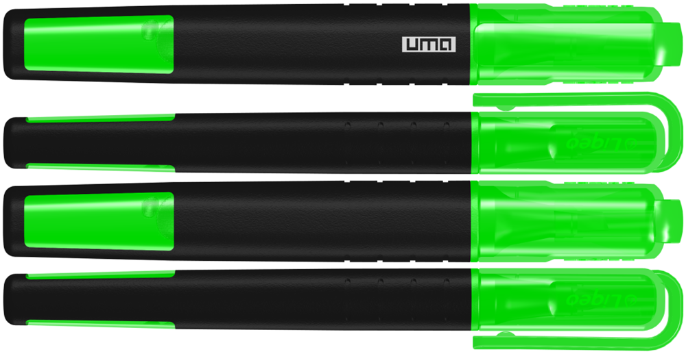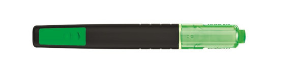 Flüssig-Textmarker in Stiftform mit schwarzem Schaft und transparenter Kappe in Schreibfarbe. mehr