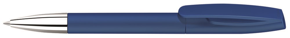 Drehkugelschreiber mit matt gedecktem Gehäuse und silberner Spitze glanzverchromt.