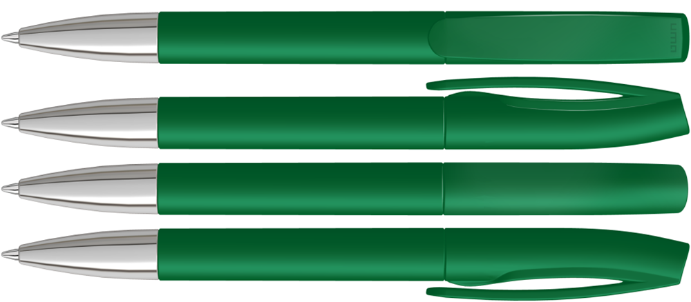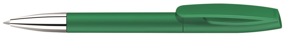 Drehkugelschreiber mit matt gedecktem Gehäuse und silberner Spitze glanzverchromt.