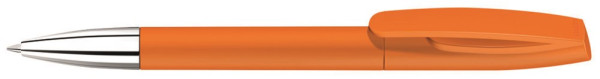 Drehkugelschreiber mit matt gedecktem Gehäuse und silberner Spitze glanzverchromt.