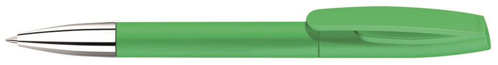 Drehkugelschreiber mit matt gedecktem Gehäuse und silberner Spitze glanzverchromt.