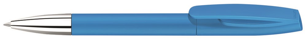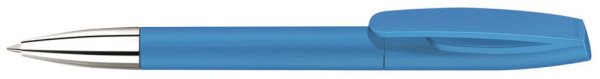 Drehkugelschreiber mit matt gedecktem Gehäuse und silberner Spitze glanzverchromt.