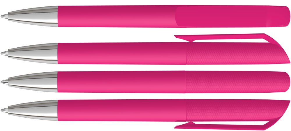 Drehkugelschreiber mit Softtouch-Gehäuse und gedeckt glänzendem Clip, Spitze glanzverchromt.