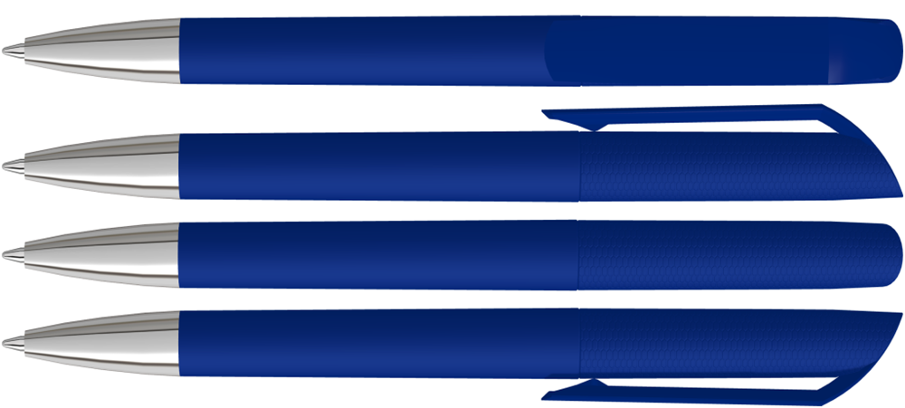 Drehkugelschreiber mit Softtouch-Gehäuse und gedeckt glänzendem Clip, Spitze glanzverchromt.