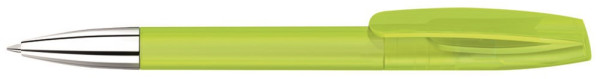 Drehkugelschreiber mit transparent gefrostetem Gehäuse und silberner Spitze glanzverchromt.