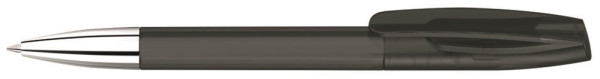 Drehkugelschreiber mit transparent gefrostetem Gehäuse und silberner Spitze glanzverchromt.