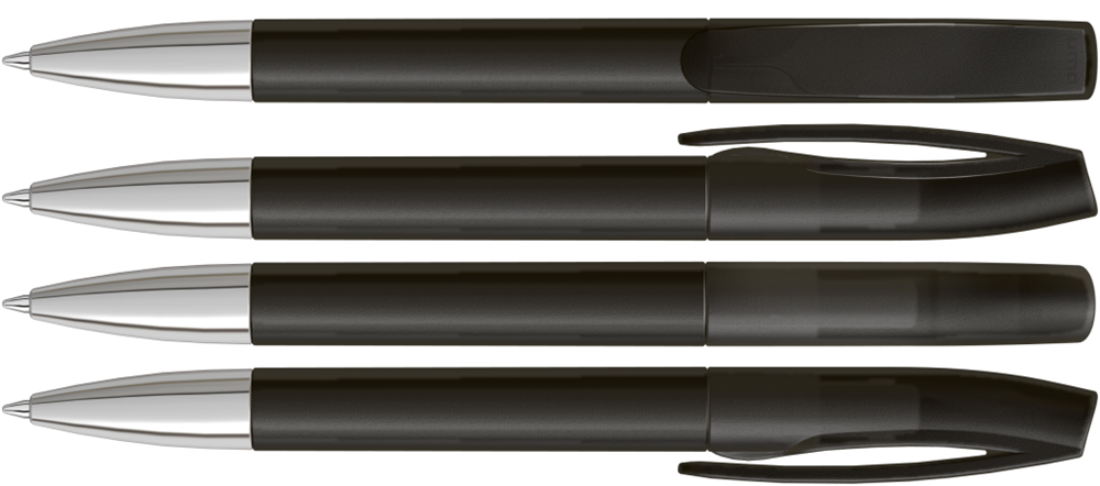 Drehkugelschreiber mit transparent gefrostetem Gehäuse und silberner Spitze glanzverchromt. mehr