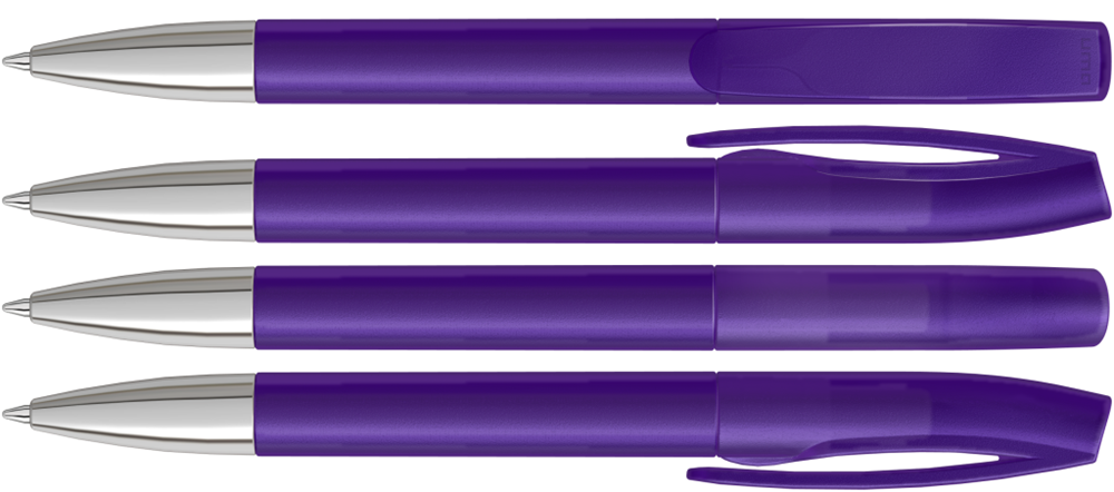 Drehkugelschreiber mit transparent gefrostetem Gehäuse und silberner Spitze glanzverchromt. mehr