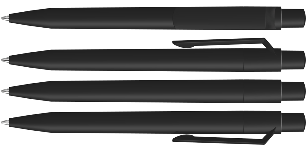 Druckkugelschreiber mit gedeckt mattem Gehäuse, Clip, Drücker und Stopfen. mehr