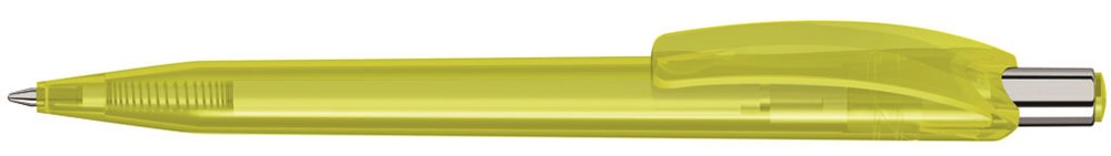 Druckkugelschreiber mit glänzend transparentem Gehäuse und Drückerstopfen. Drücker in silber glänzend.