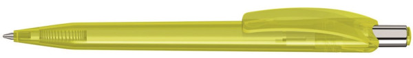 Druckkugelschreiber mit glänzend transparentem Gehäuse und Drückerstopfen. Drücker in silber... mehr