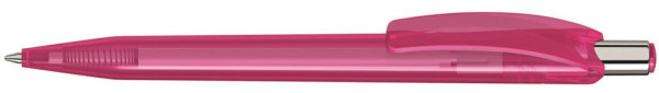 Druckkugelschreiber mit glänzend transparentem Gehäuse und Drückerstopfen. Drücker in silber... mehr