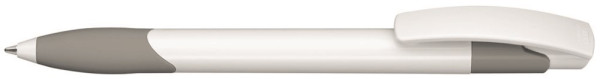 Druckkugelschreiber mit gedeckt glänzendem Schaft und Clipdrücker in weiß. Gummigriffzone und... mehr