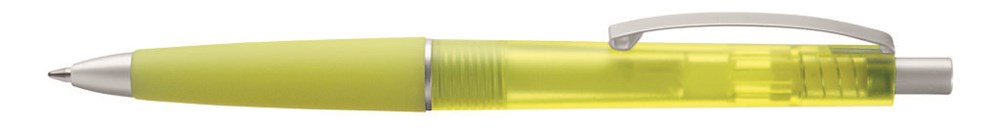 Druckkugelschreiber mit transparent gefrostetem Gehäuse, Gummigriffzone und geschwungenem... mehr