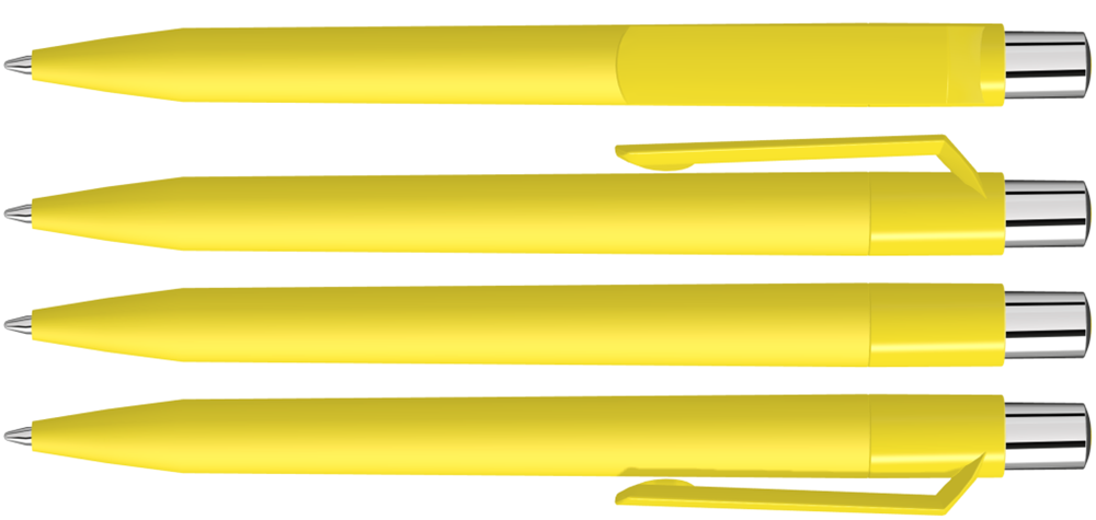 Druckkugelschreiber mit Softtouch-Schaft, gedeckt glänzendem Clip, silber glänzendem Drücker und farbigem Stopfen.