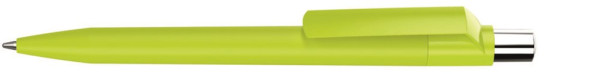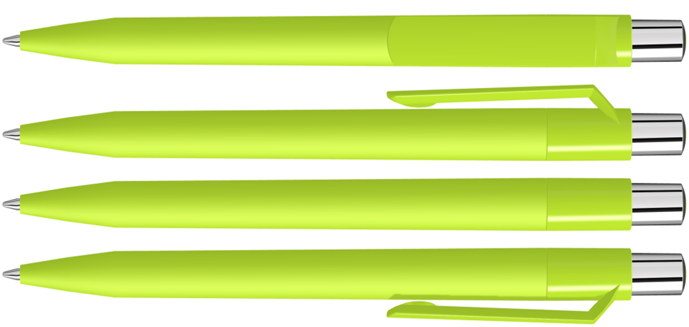Druckkugelschreiber mit Softtouch-Schaft, gedeckt glänzendem Clip, silber glänzendem Drücker und farbigem Stopfen.