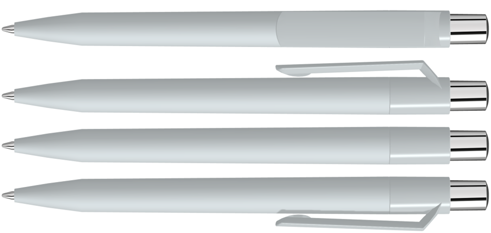 Druckkugelschreiber mit Softtouch-Schaft, gedeckt glänzendem Clip, silber glänzendem Drücker und farbigem Stopfen.