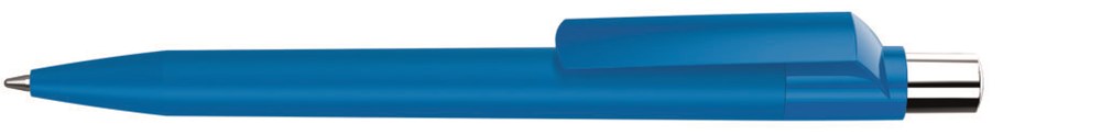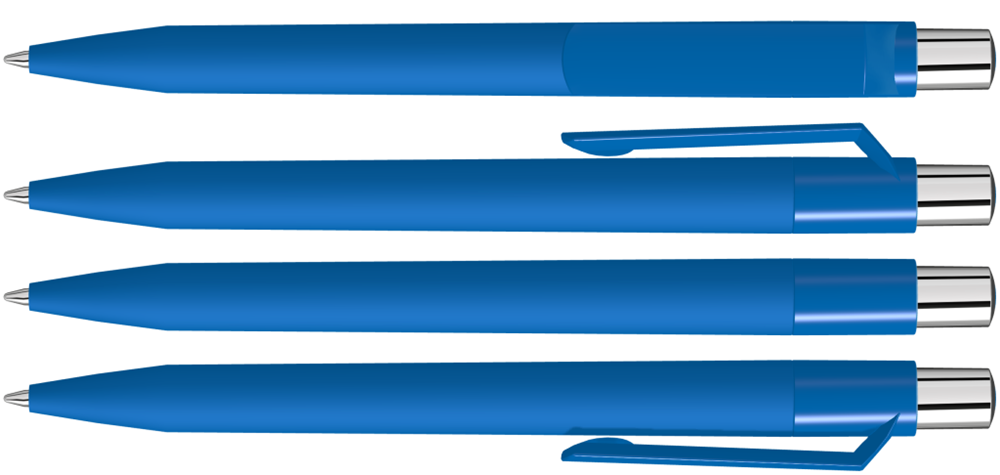 Druckkugelschreiber mit Softtouch-Schaft, gedeckt glänzendem Clip, silber glänzendem Drücker und farbigem Stopfen.