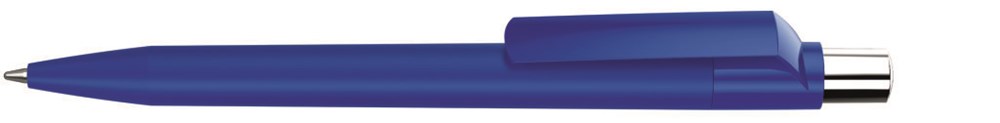 Druckkugelschreiber mit Softtouch-Schaft, gedeckt glänzendem Clip, silber glänzendem Drücker und farbigem Stopfen.