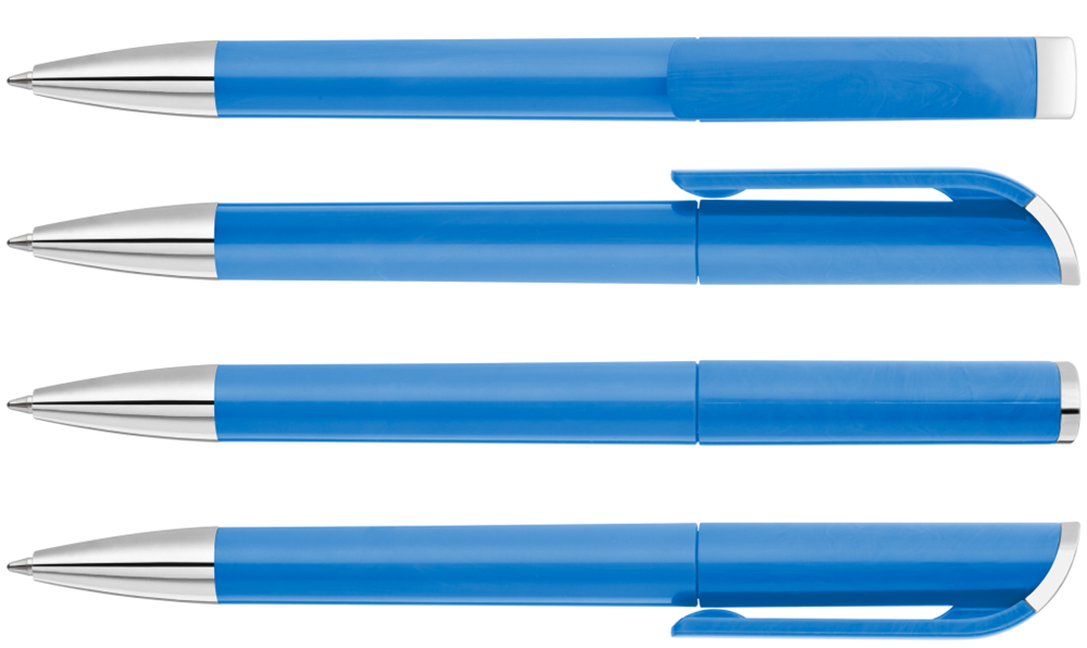 Drehkugelschreiber mit gedeckt glänzendem Gehäuse, Stopfen und Spitze glanzverchromt. mehr