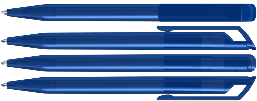 Drehkugelschreiber mit transparent glänzendem Gehäuse.