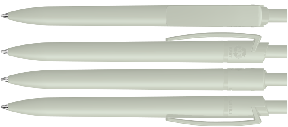 Druckkugelschreiber aus recyceltem PET-Material mit matt gedecktem Gehäuse, Clip und Drücker.