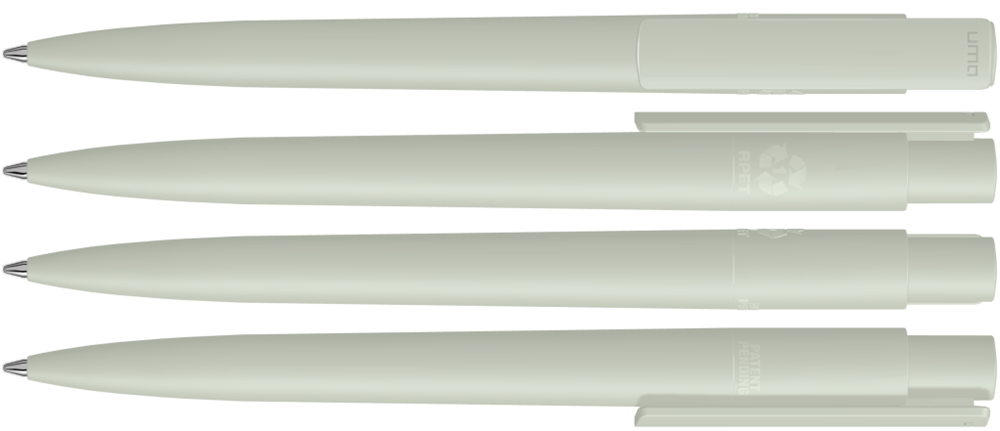 Druckkugelschreiber aus recyceltem PET-Material mit matt gedecktem Gehäuse und Clip.