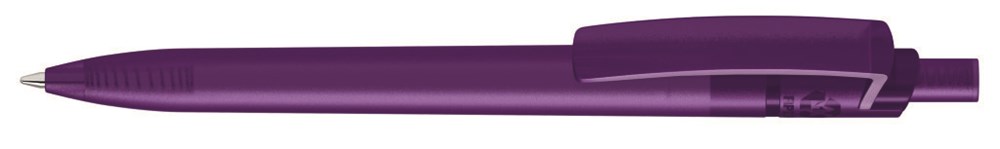 Druckkugelschreiber aus recyceltem PET-Material mit transparent gefrostetem Gehäuse, Clip und Drücker.