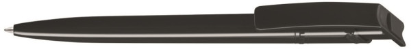 Druckkugelschreiber aus recyceltem PET-Material mit gedeckt glänzendem Gehäuse und Stopfen.
