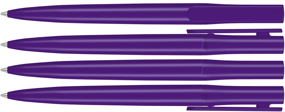 Drehkugelschreiber aus recyceltem PET-Material mit gedeckt glänzendem Gehäuse.