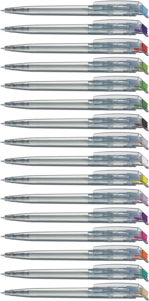 Druckkugelschreiber aus recyceltem PET-Material mit klar transparent glänzendem Gehäuse und... mehr