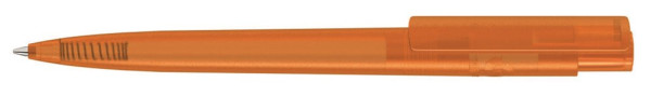 Druckkugelschreiber aus recyceltem PET-Material mit transparent gefrostetem Gehäuse und Clip.