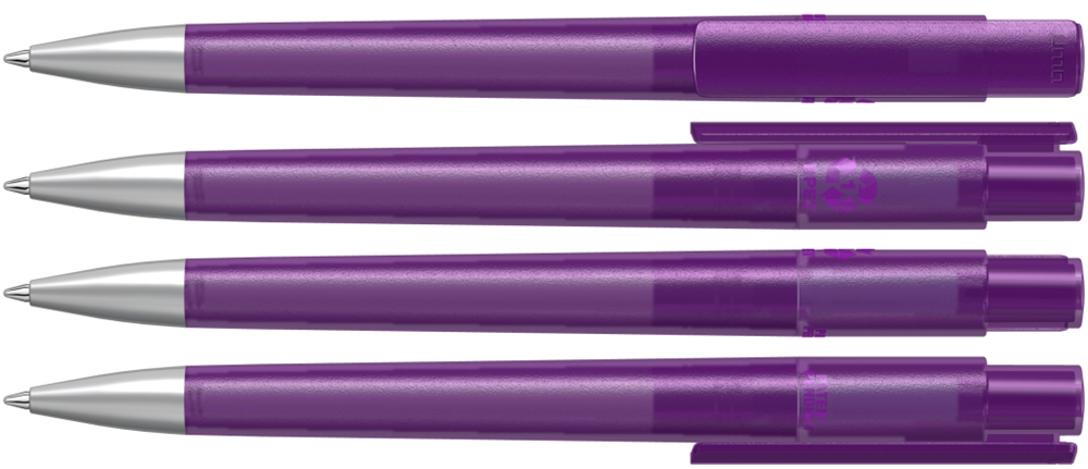 Druckkugelschreiber aus recyceltem PET-Material mit transparent gefrostetem Gehäuse und Clip... mehr