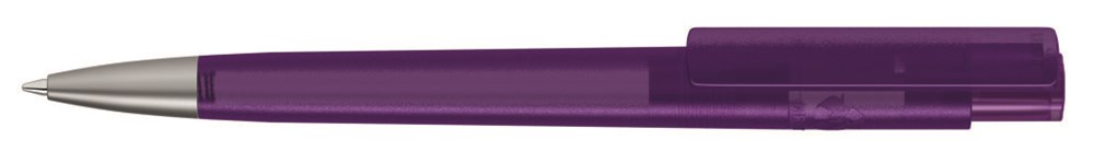 Druckkugelschreiber aus recyceltem PET-Material mit transparent gefrostetem Gehäuse und Clip sowie Metallspitze aus recyceltem Aluminium in silber matt.
