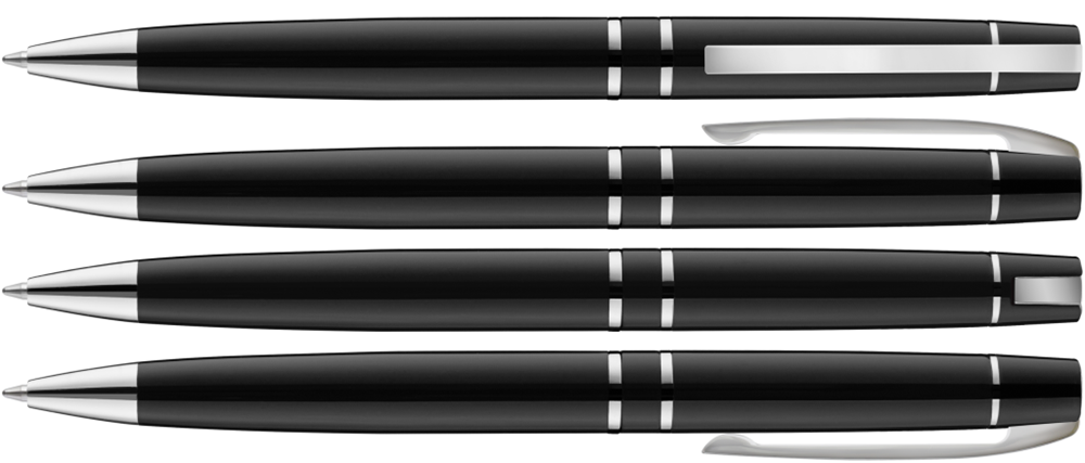 Schlanker Metall-Drehkugelschreiber mit Softdrehmechanik und gefedertem Clip. Beschlagteile glanzverchromt.