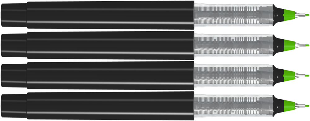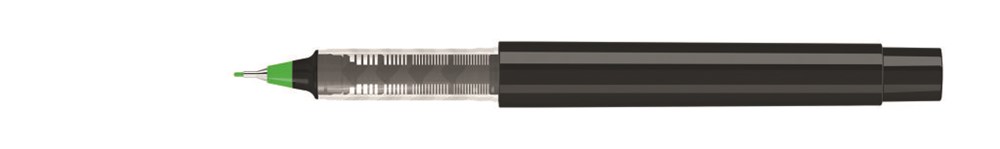 Fineliner mit Gehäuse aus recyceltem PET-Material in gedeckt glänzend weiß oder schwarz. Stopfen in den 12 möglichen Schreibfarben.