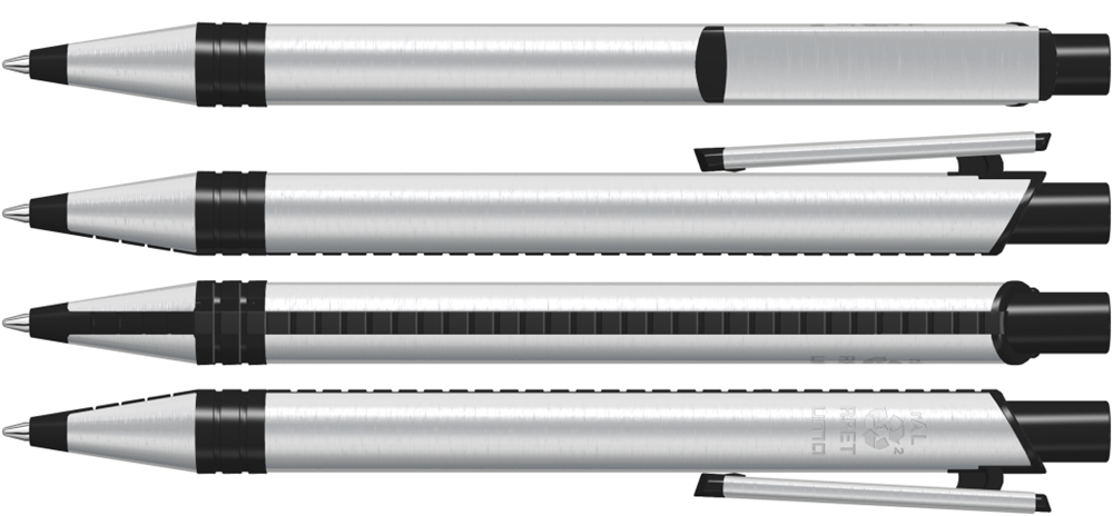 Metall-Druckkugelschreiber mit Metallspitze, Metallschaft und Metallclip aus recyceltem... mehr