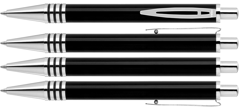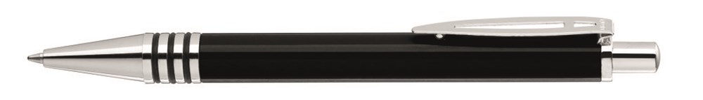 Metall-Druckkugelschreiber mit glänzend lackiertem Aluminiumschaft und 3 eingelassenen, kombinierbaren Gummiringen. Metallbeschlagteile glanzverchromt.