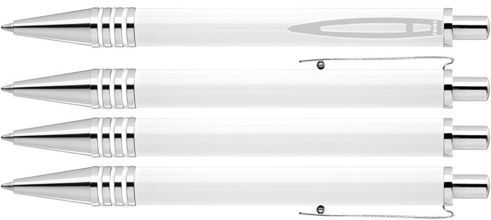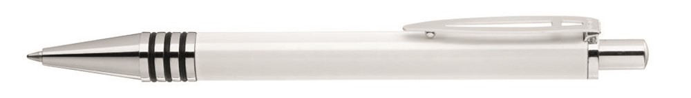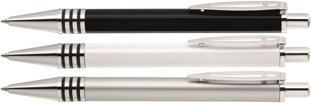 Metall-Druckkugelschreiber mit glänzend lackiertem Aluminiumschaft und 3 eingelassenen, kombinierbaren Gummiringen. Metallbeschlagteile glanzverchromt.
