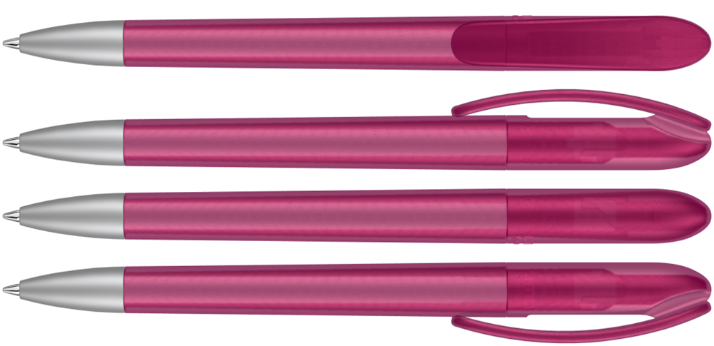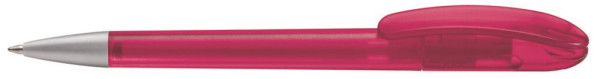 Drehkugelschreiber mit transparent gefrostetem Gehäuse. Schwere matt verchromte Metallspitze. mehr