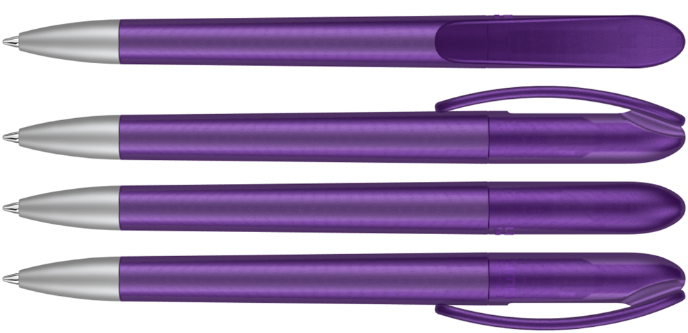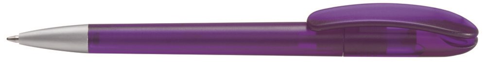 Drehkugelschreiber mit transparent gefrostetem Gehäuse. Schwere matt verchromte Metallspitze. mehr