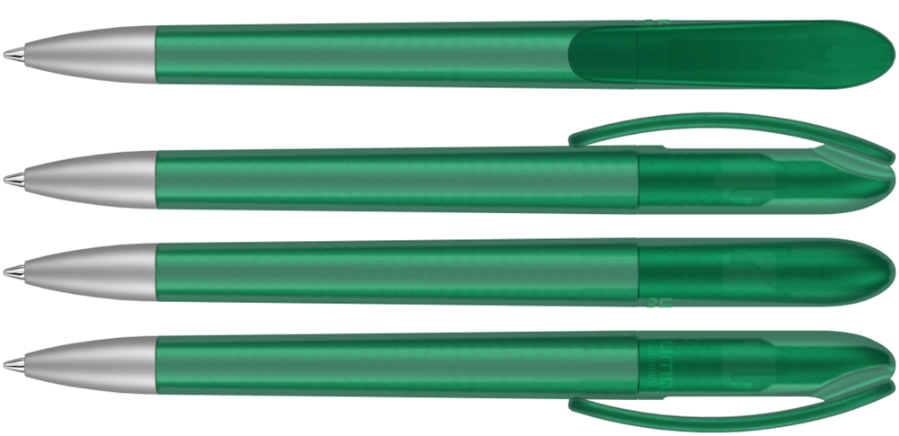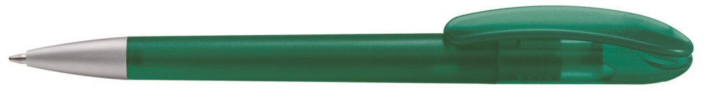 Drehkugelschreiber mit transparent gefrostetem Gehäuse. Schwere matt verchromte Metallspitze. mehr