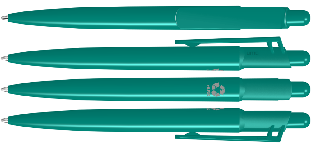 Druckkugelschreiber mit gedeckt glänzendem Gehäuse aus 100% recyceltem Kunststoff und großem Clip an verstärkter Clipanbindung. Das Modell ist mit dem dem rABS Logo gekennzeichnet. Dank der ClimatePartner-zertifizierten Produktion leistet der uma VITAN RECY einen zusätzlichen nachhaltigen Beitrag zur Schonung der Umwelt. Aufgrund der Besonderheit des Materials (ABS Recycled Plastic) sind produktionstechnische Farbschwankungen gegeben.